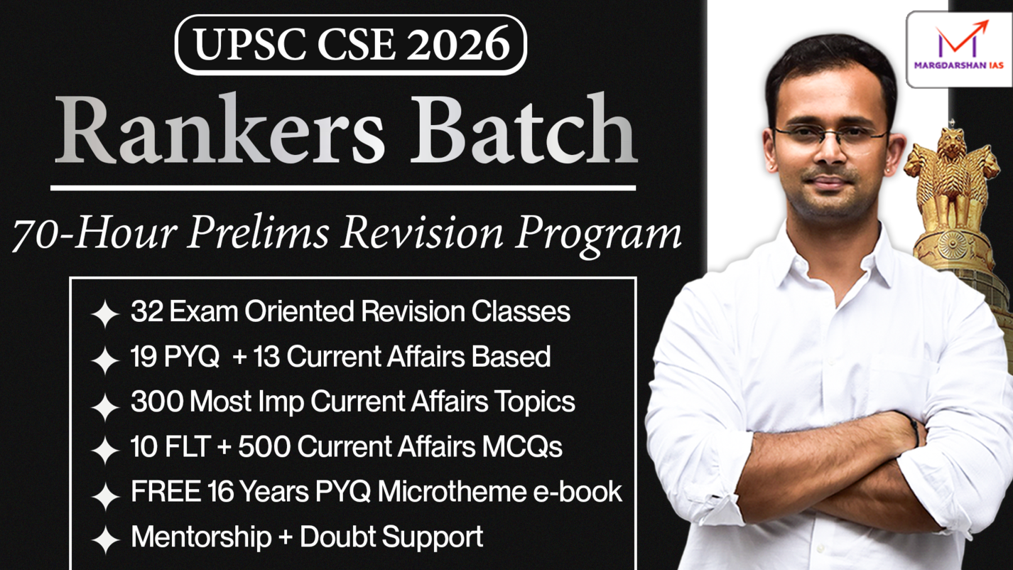 UPSC Prelims 2026 के लिए अब केवल Final 40 Days बचे हैं। यही समय तय करेगा आपका चयन। Rankers Batch है एक 70-Hour PYQ Driven Revision Program जो आपकी तैयारी को exam-ready बनाता है। इसमें मिलेगा: 15 साल के PYQs आधारित रिविजन 1.5 साल के करंट अफेयर्स का समेकन Full Length Tests + CSAT प्रैक्टिस Elimination technique और exam temperament 300+ महत्वपूर्ण टॉपिक्स और discussion 📅 Start: 25 March | Last Date: 6 April 👉 अभी जॉइन करें https://courses.margdarshanias.com/products/rankers-batch-for-upsc-prelims-2026/ 📞 For any queries/contact: Call / WhatsApp: 8587815900, 9354765382